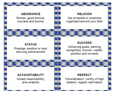 Developed 70 values cards given to participants as a tool to use during workshop activities.