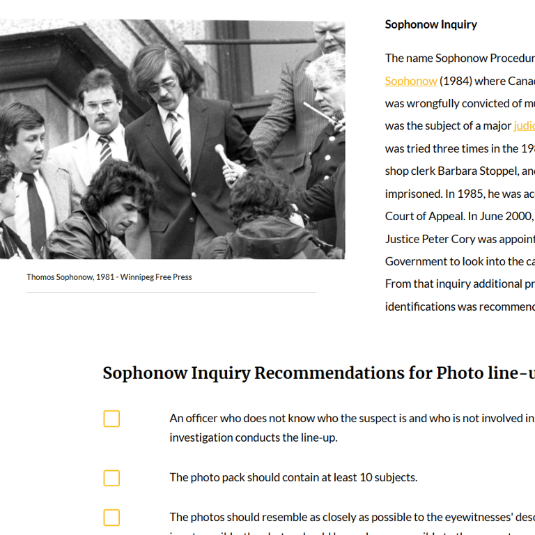 - Explain the Sophonow inquiry and resulting procedure.