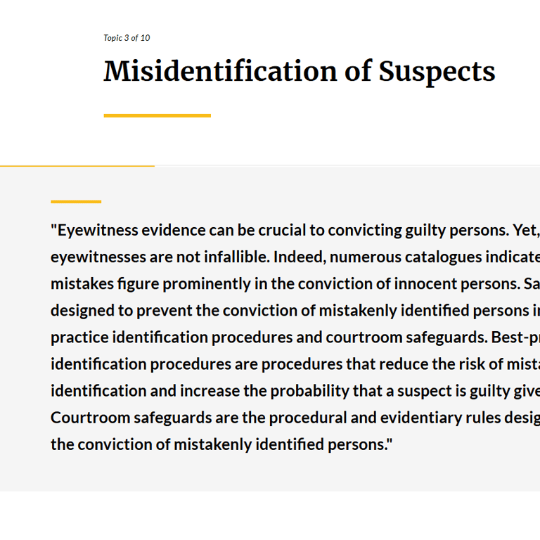 - Explore historic eyewitness misidentifications and miscarriages of justice.