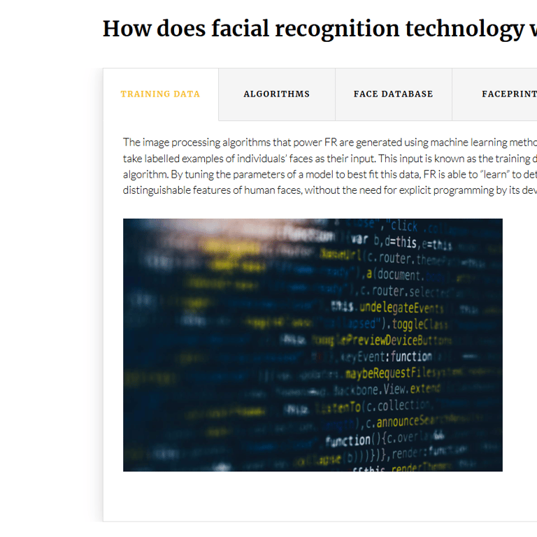 - Describe facial recognition technology and how it works.