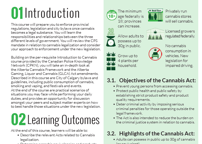 Developed a cannabis legalization training program for all Calgary Police Service employees.